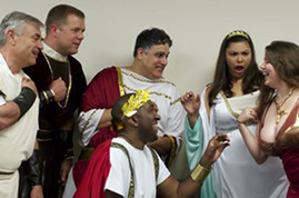 The Rude Mechanicals theater company plays up the 1960s resonance of Lysistrata, filling the production with topical references to the culture and music of young people of the era.